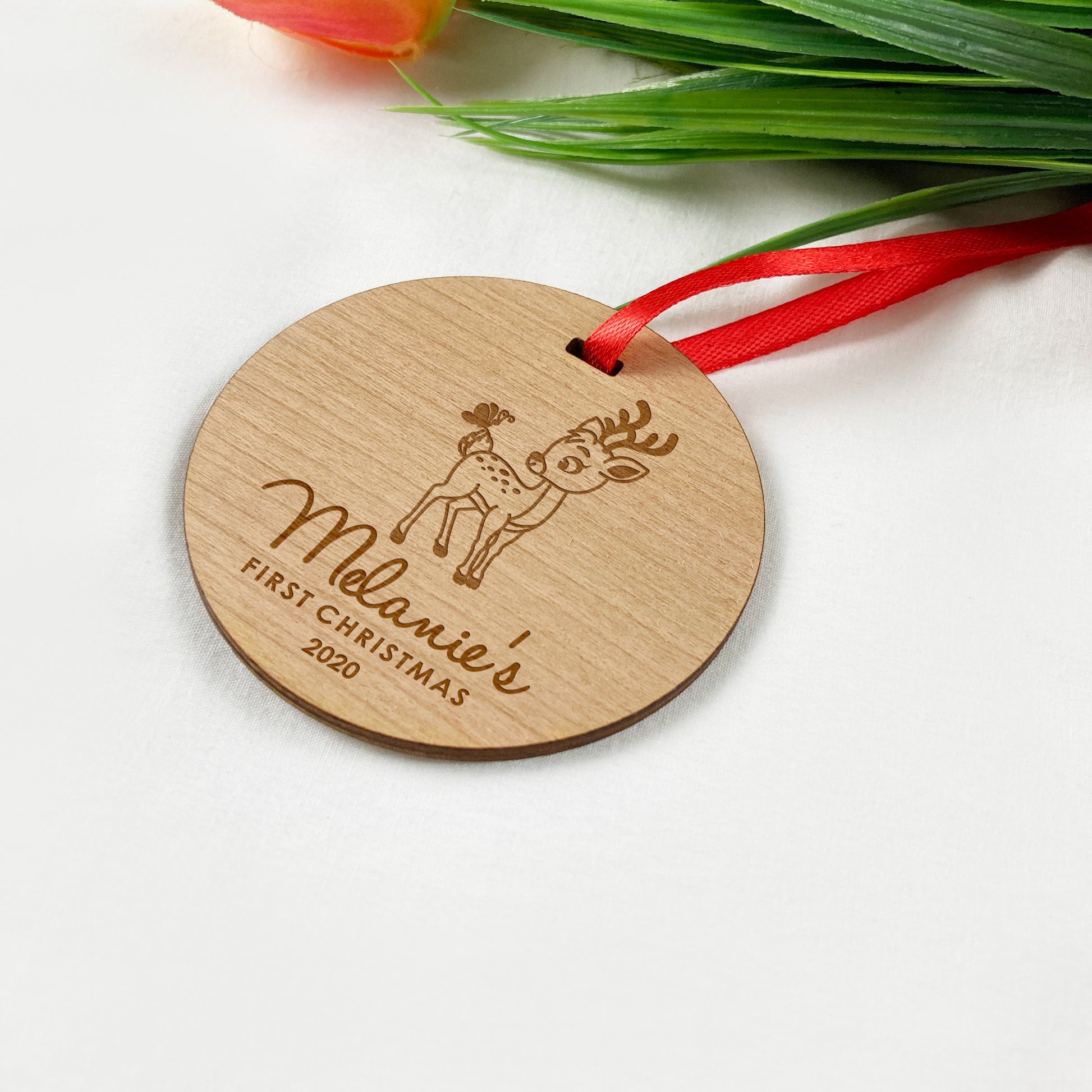 Celebrate your Baby's first Christmas with these beautiful round engraved wooden ornaments. These Christmas Ornaments are ideal keepsake gifts, perfect to hang on the Christmas tree, add to a stocking or use as a gift tag for Christmas gifts.
