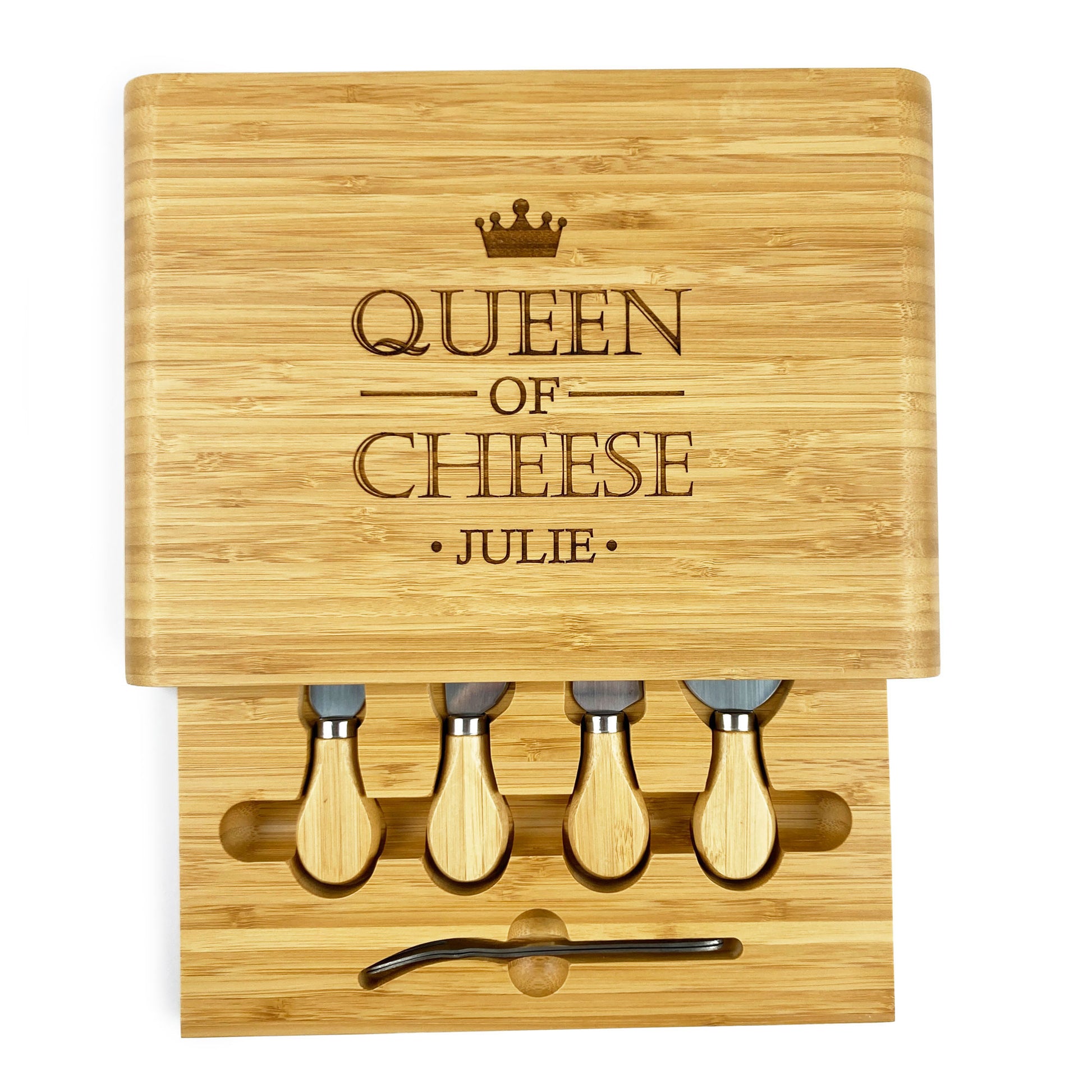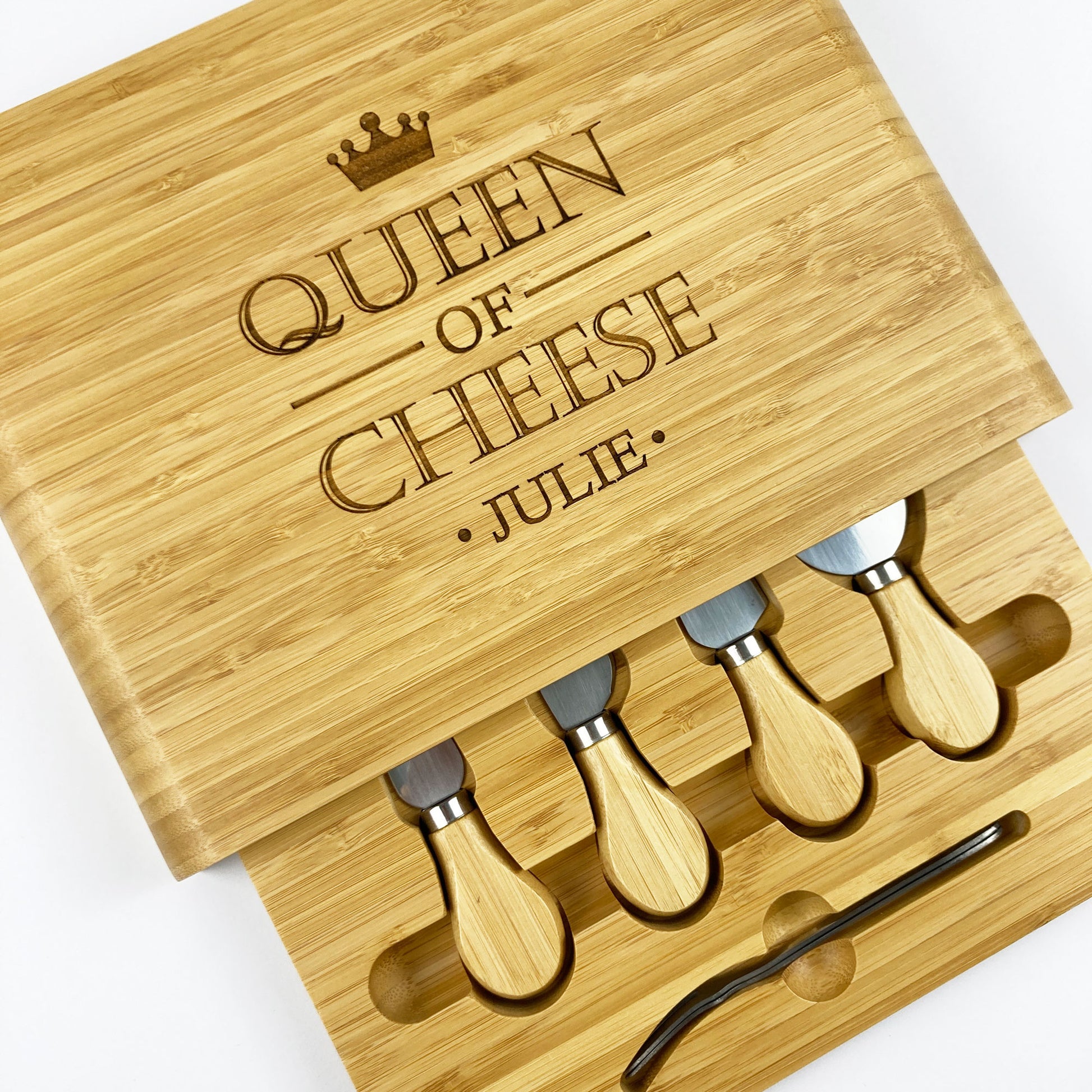Queen of Cheese Wooden Cheese Board with Knives Gift Set