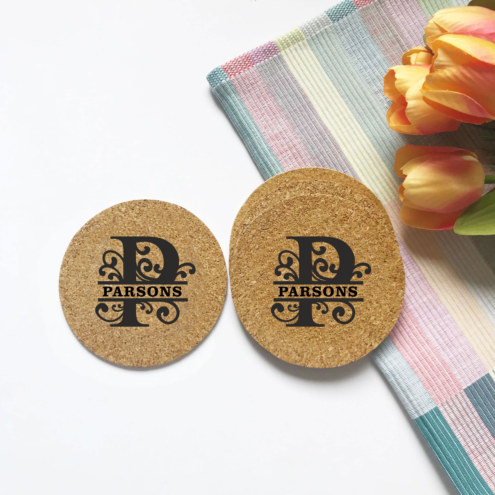 These coasters are crafted from durable, 100% renewable, all-natural cork – an environmentally, truly sustainable material that absorbs moisture and protects surfaces from hot and cold temperatures. Since these cork coasters are all-natural, they can vary in color and thickness.