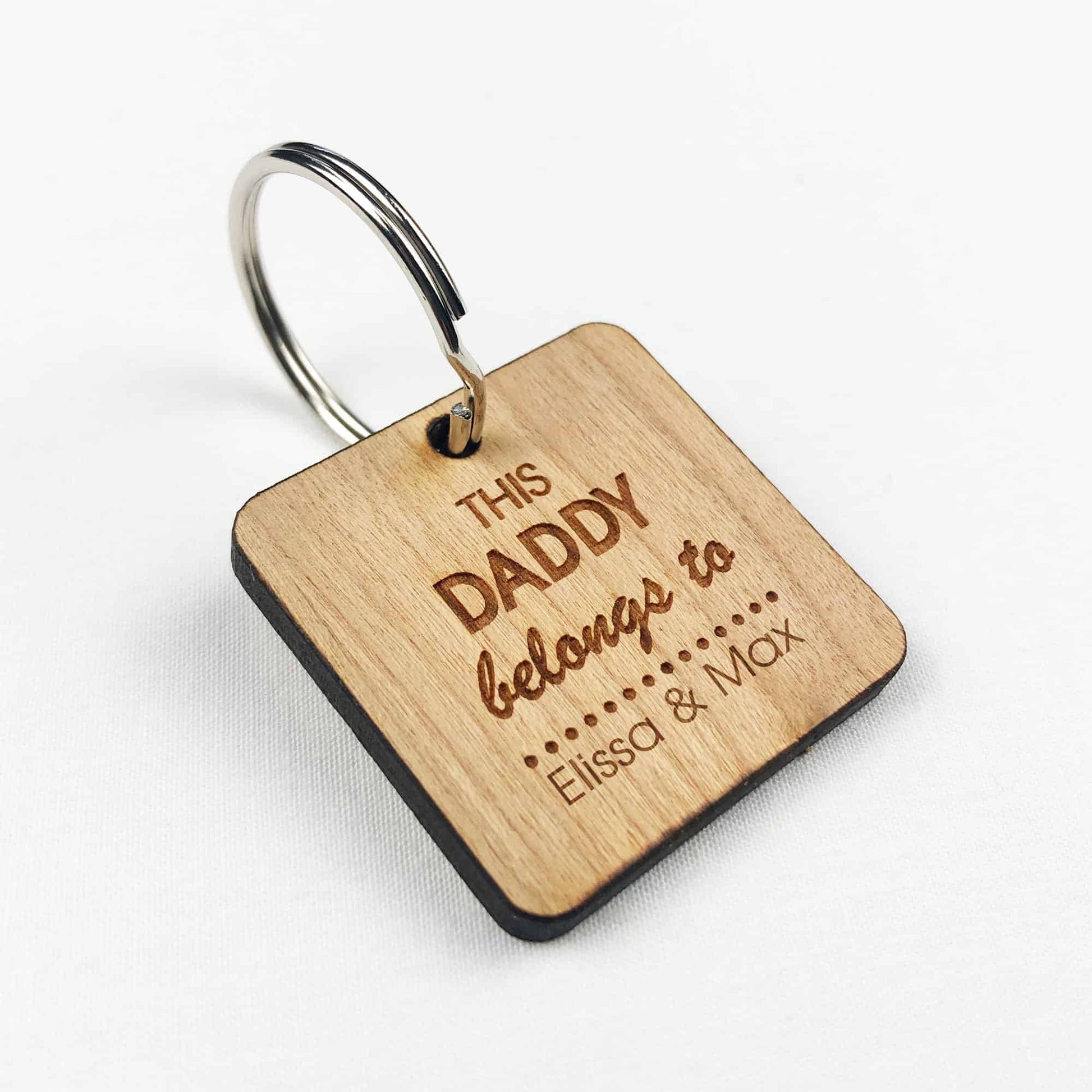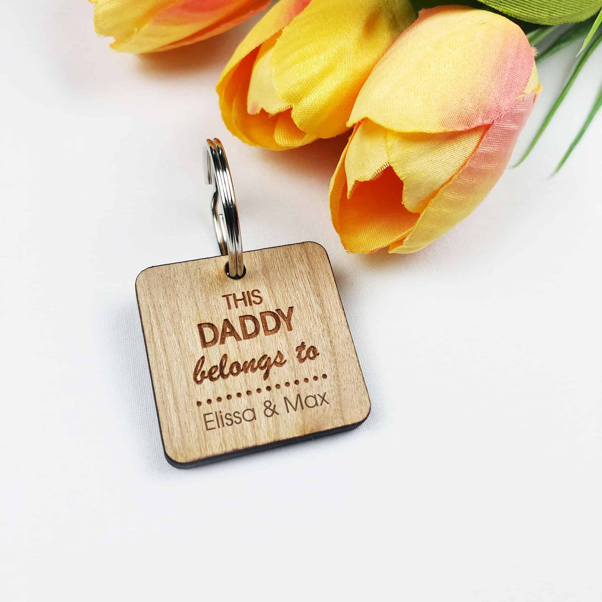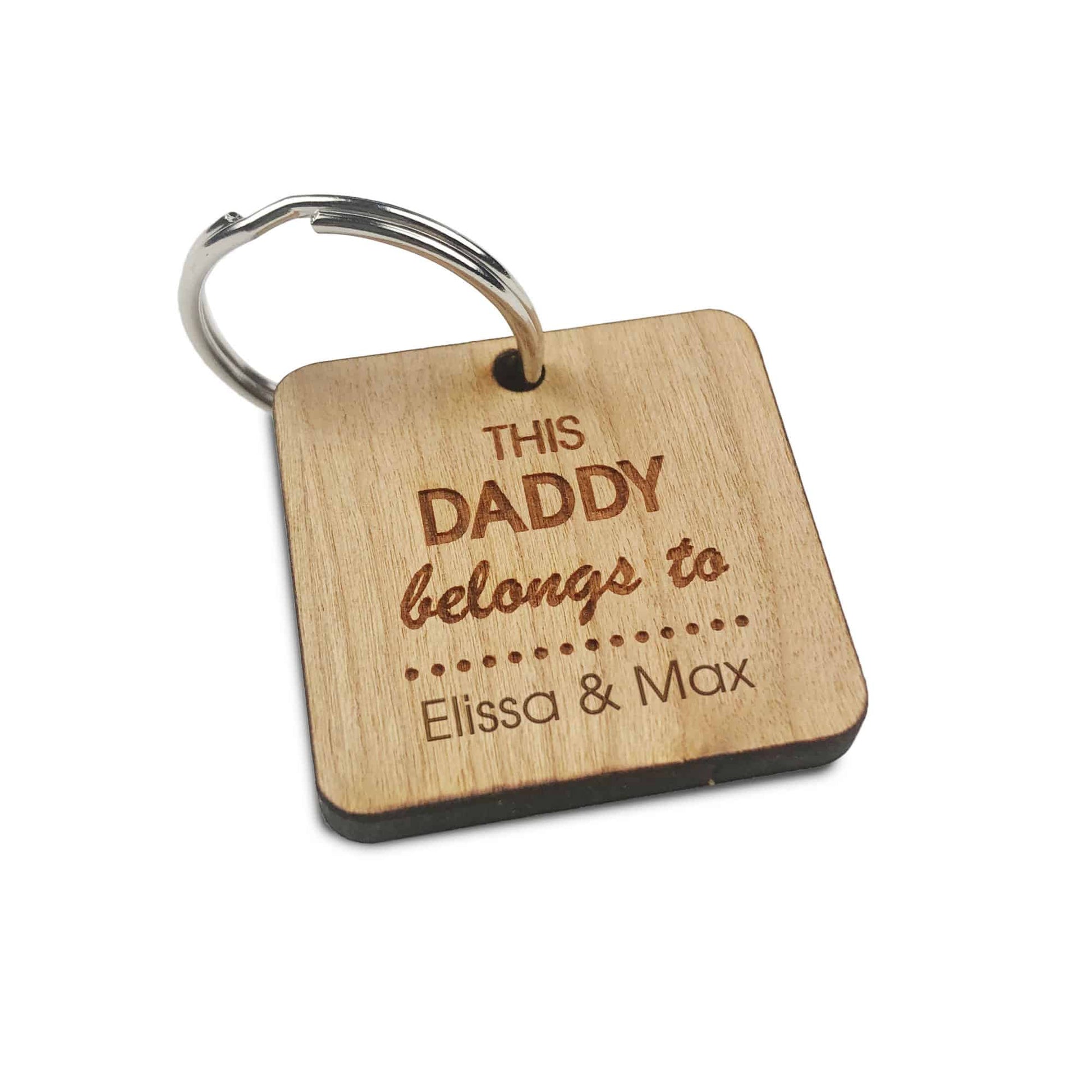 This Daddy Belongs to Square Wooden Key ring Gift Fathers Day Birthday