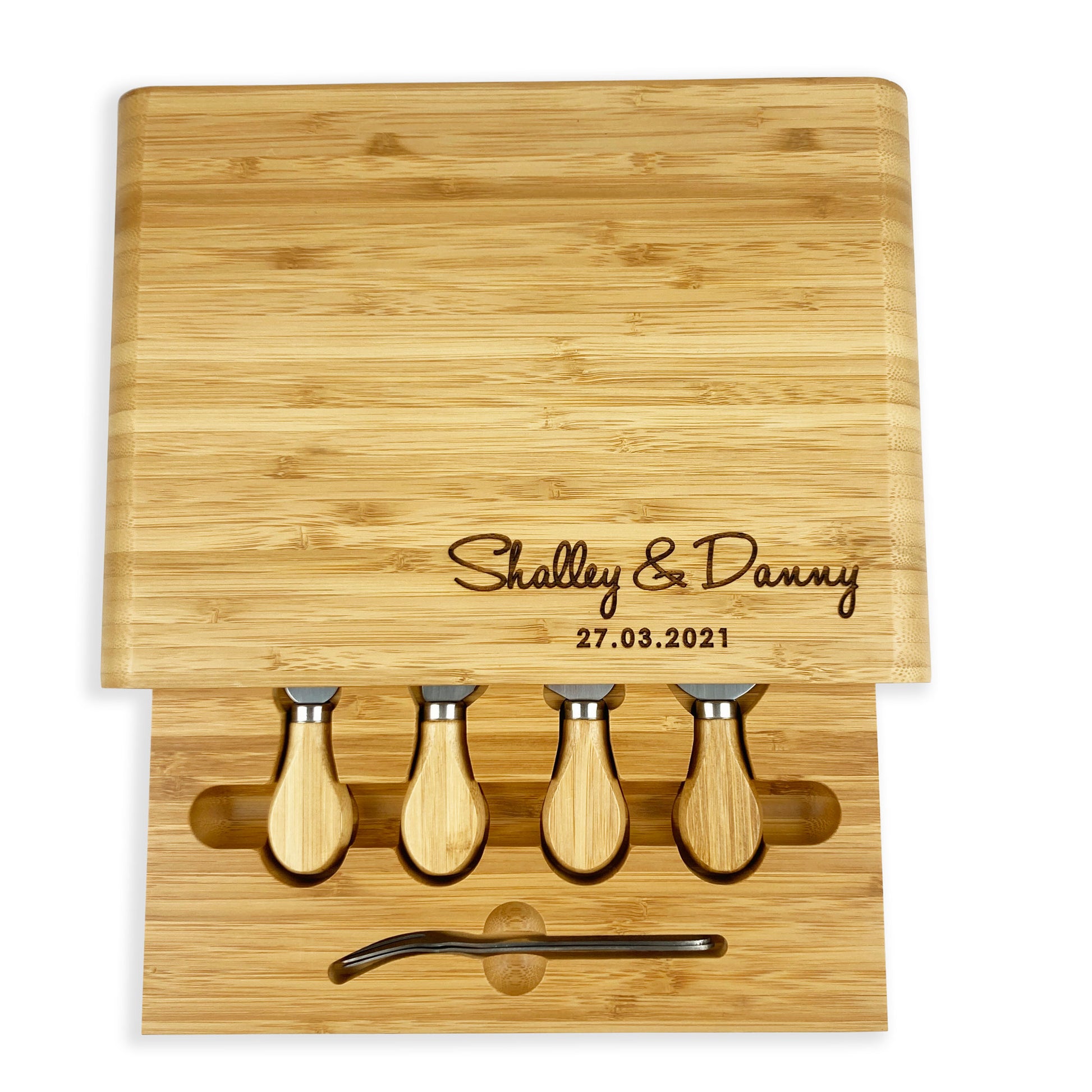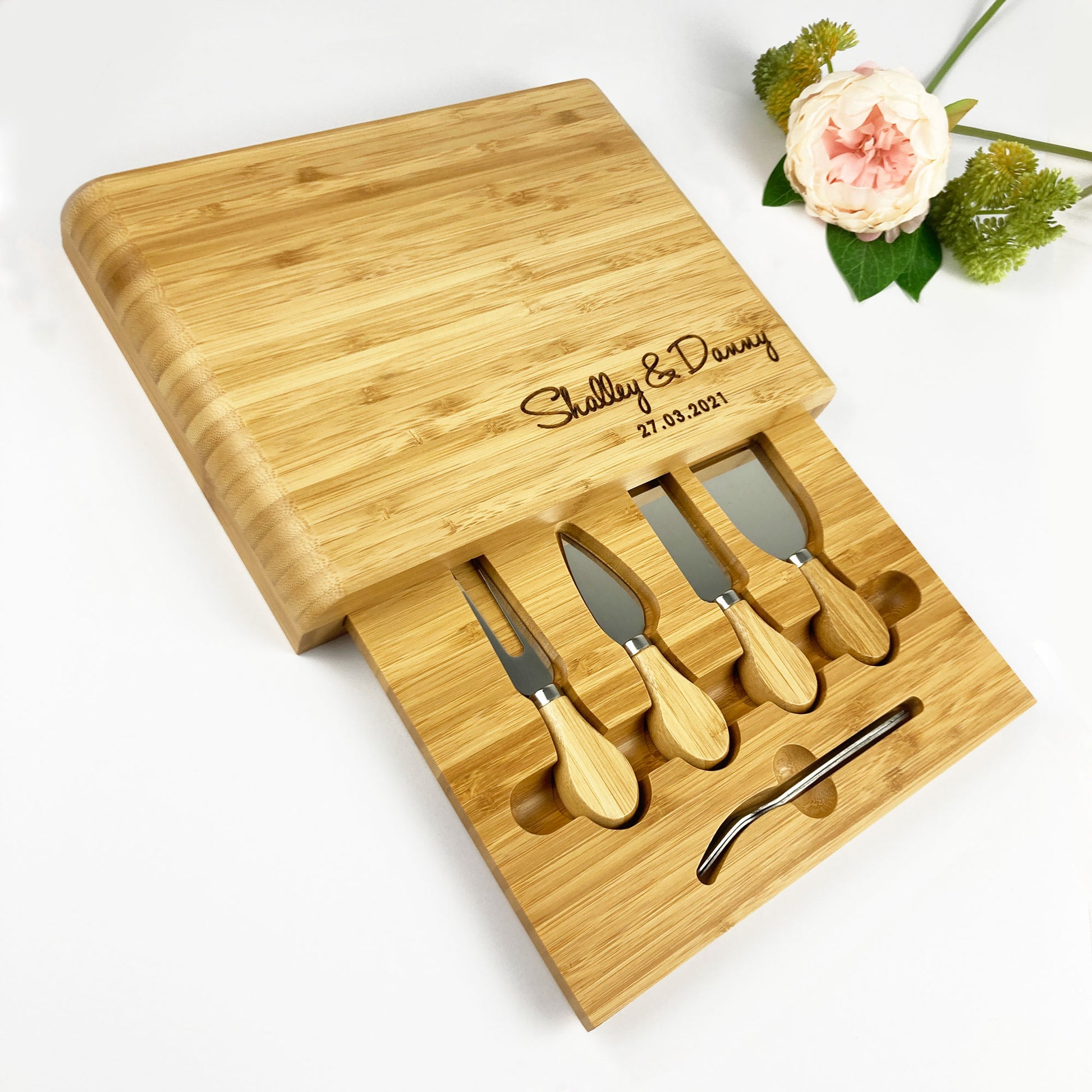 Wooden Cheese Cutting Board Gift Set with Knives Wedding Anniversary Newly Weds