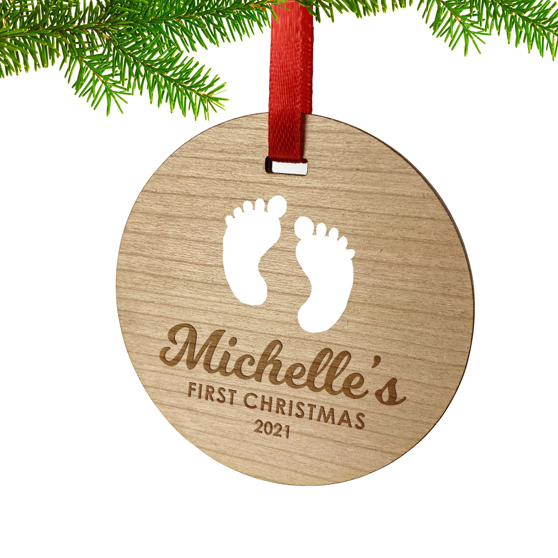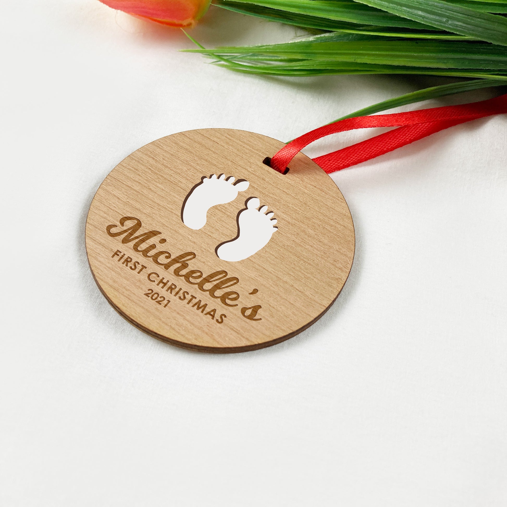 Celebrate your Baby's first Christmas with these beautiful round engraved wooden ornaments. These Christmas Ornaments are ideal keepsake gifts, perfect to hang on the Christmas tree, add to a stocking or use as a gift tag for Christmas gifts.
