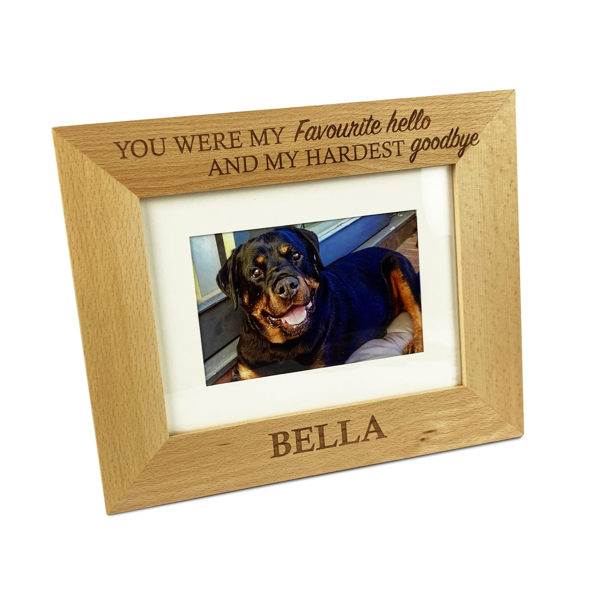 This personalised wooden photo frame is a perfect gift for an Animal Lover or to Remember a Beloved Pet. These frames are custom engraved with the name and details.