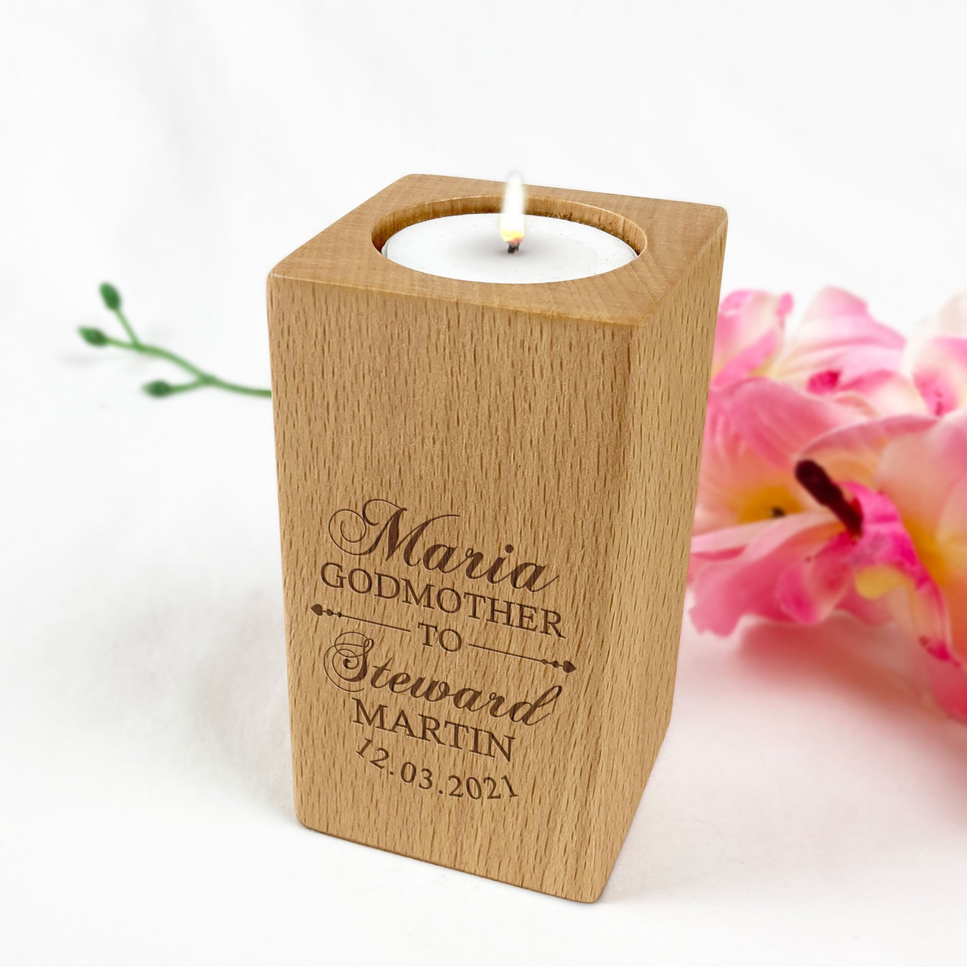 Choose from a variety of personalised designs. You can personalise the candle holder with any name, date and message. Please message us the names and details during order.