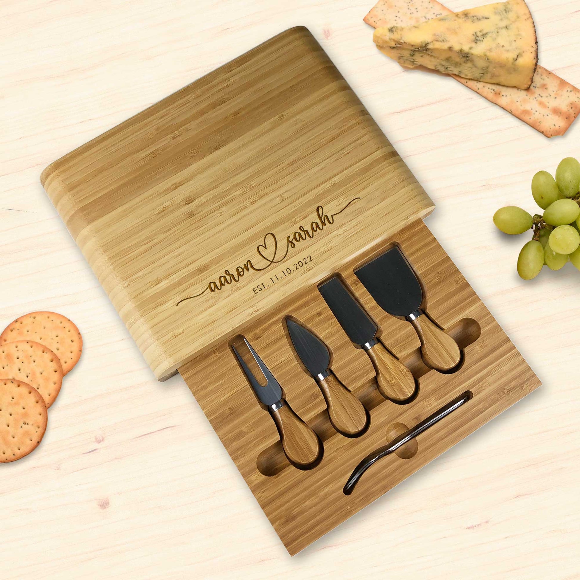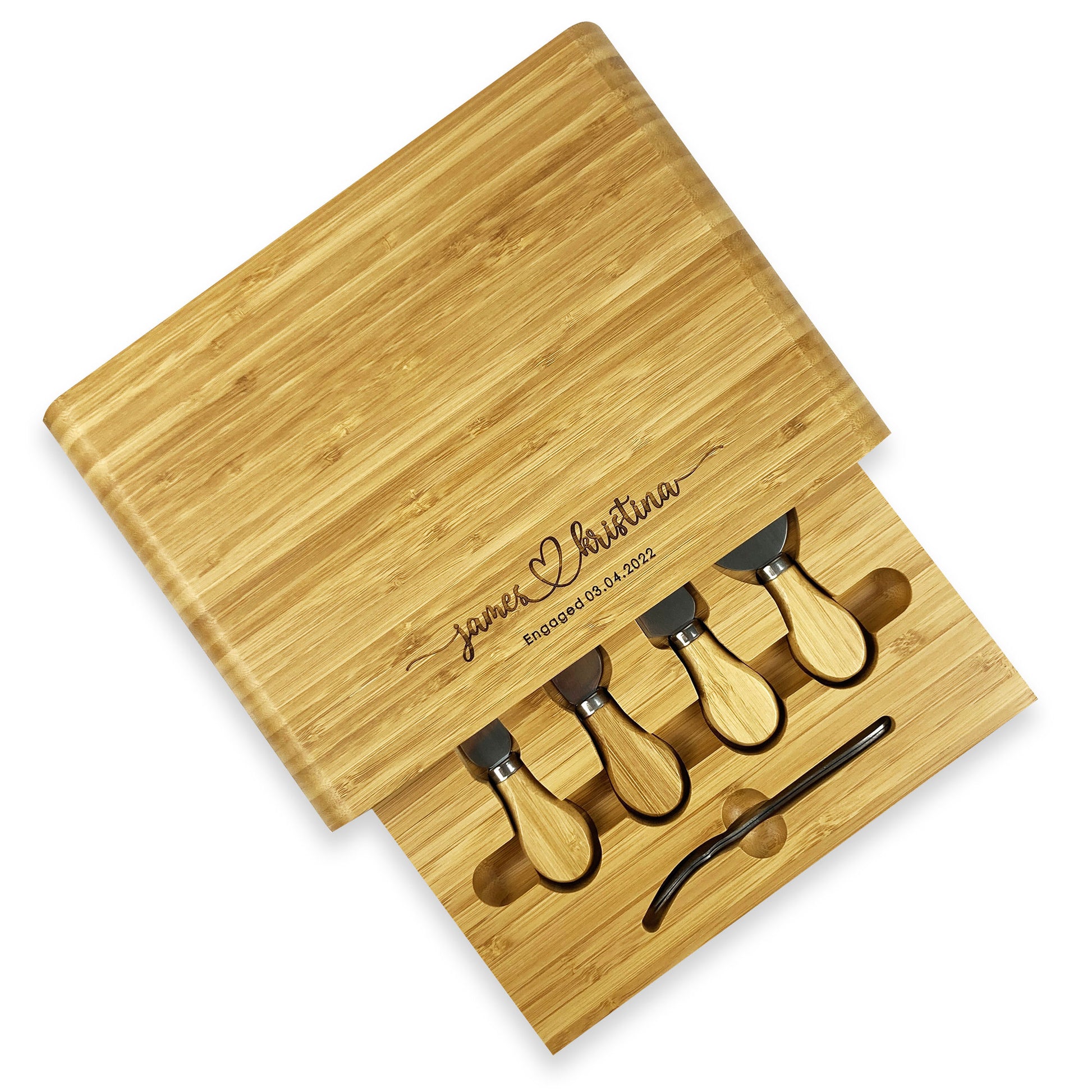 These engraved Cheeseboard make fantastic wedding, engagement, house warming and anniversary gift. Each board is unique, made of Bamboo. You can also use the cheese board as a serving tray, for food such as cheeses, cooked meats or fruit. The images in listing are a graphical representation of the original design. The actual Personalised Engraved cheese board will look close to images and gain the actual wood texture.
