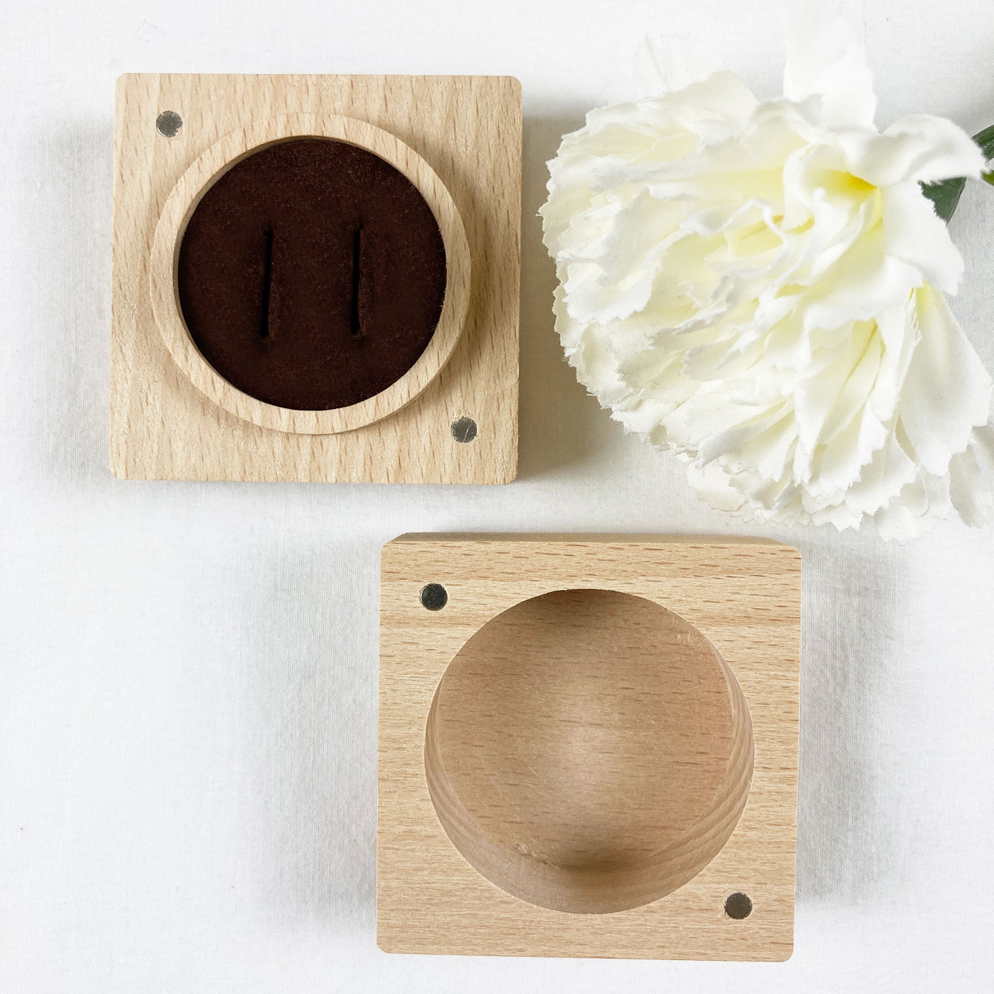 These beautiful wooden square boxes are custom engraved to order. Add a personalised touch, to your special celebration with one of our Custom Ring Boxes. A velvet topped foam insert for 1 or 2 rings included.