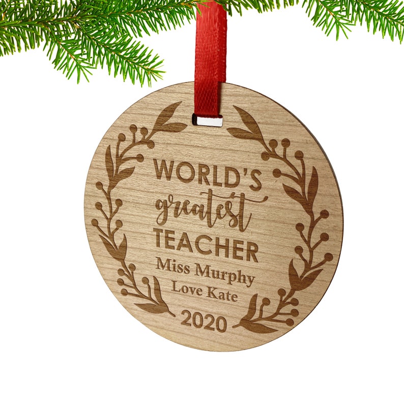 Engraved Wooden Round Christmas Bauble Ornament Gift for Teacher