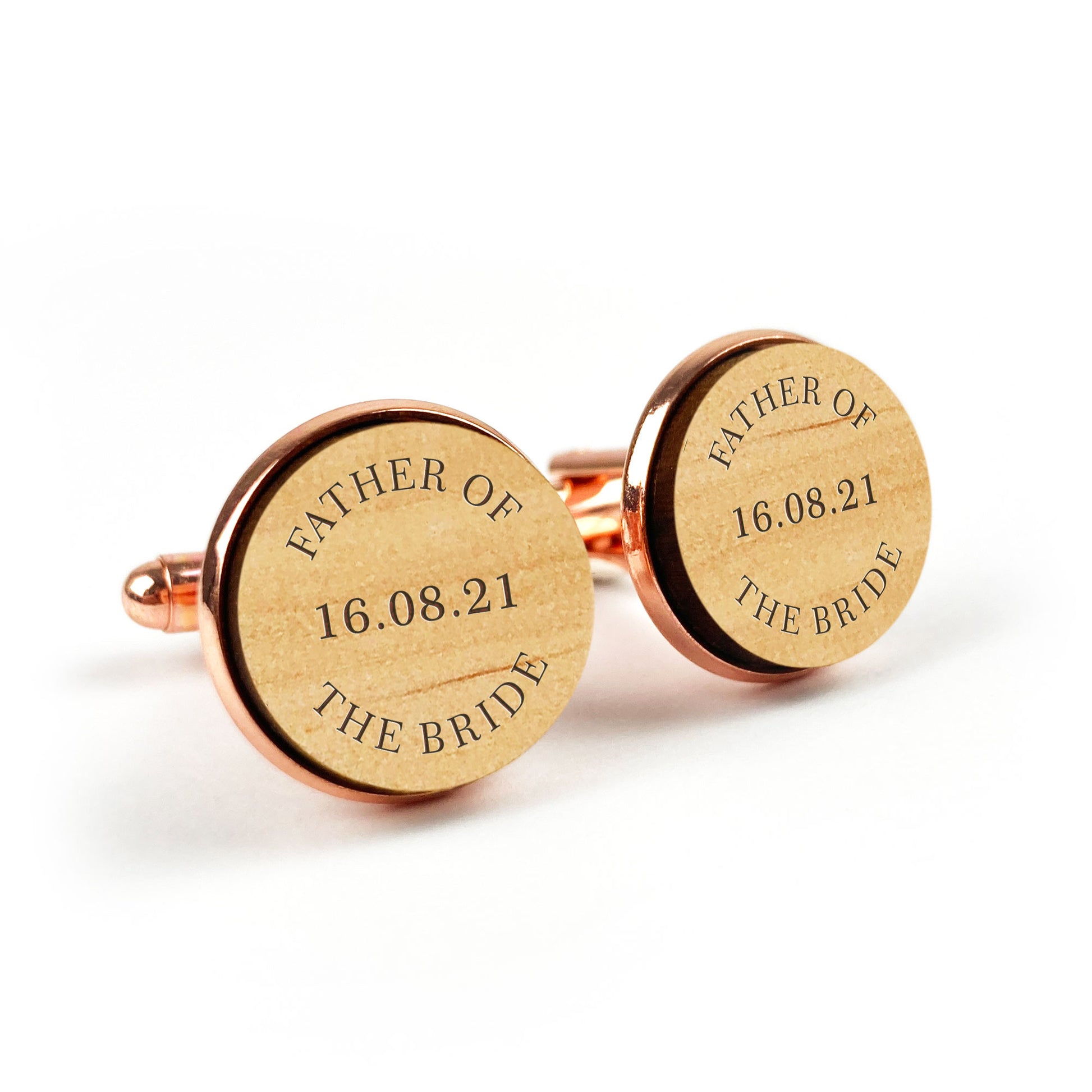 Father of the Bride Round Wooden Engraved Shirt Cufflinks Gift