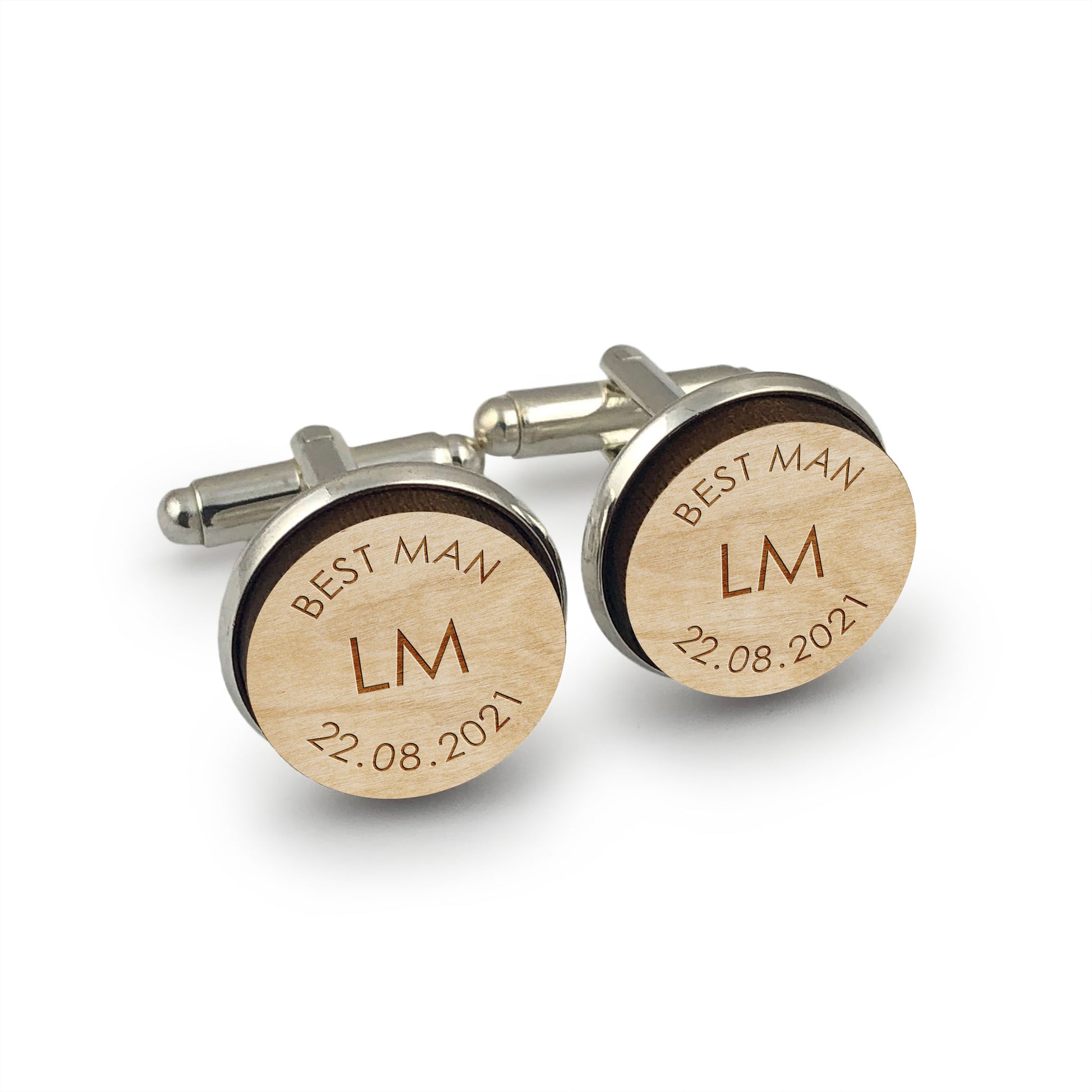 Best Man Round Wooden Engraved Shirt Cufflinks Gift with Custom Initials & Date