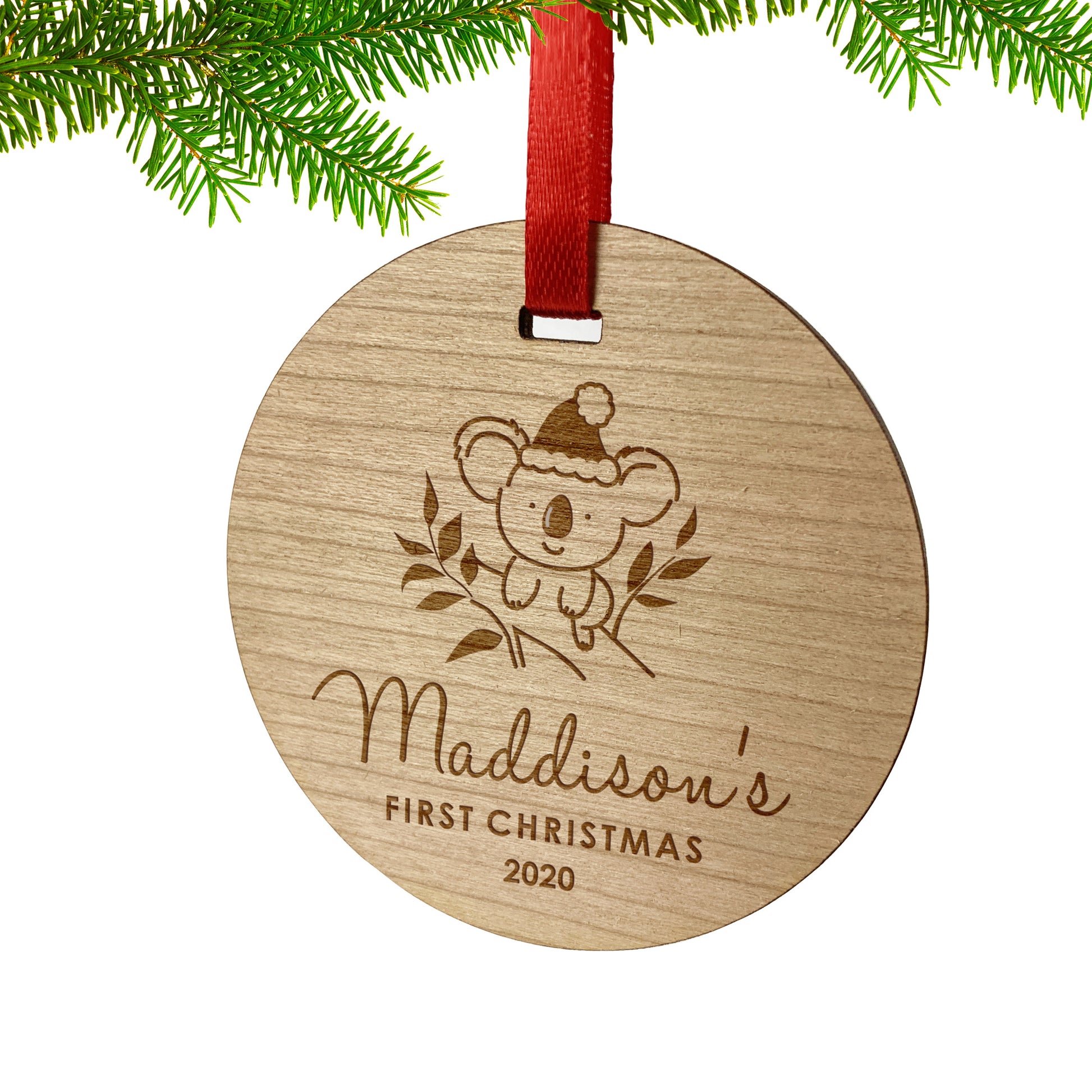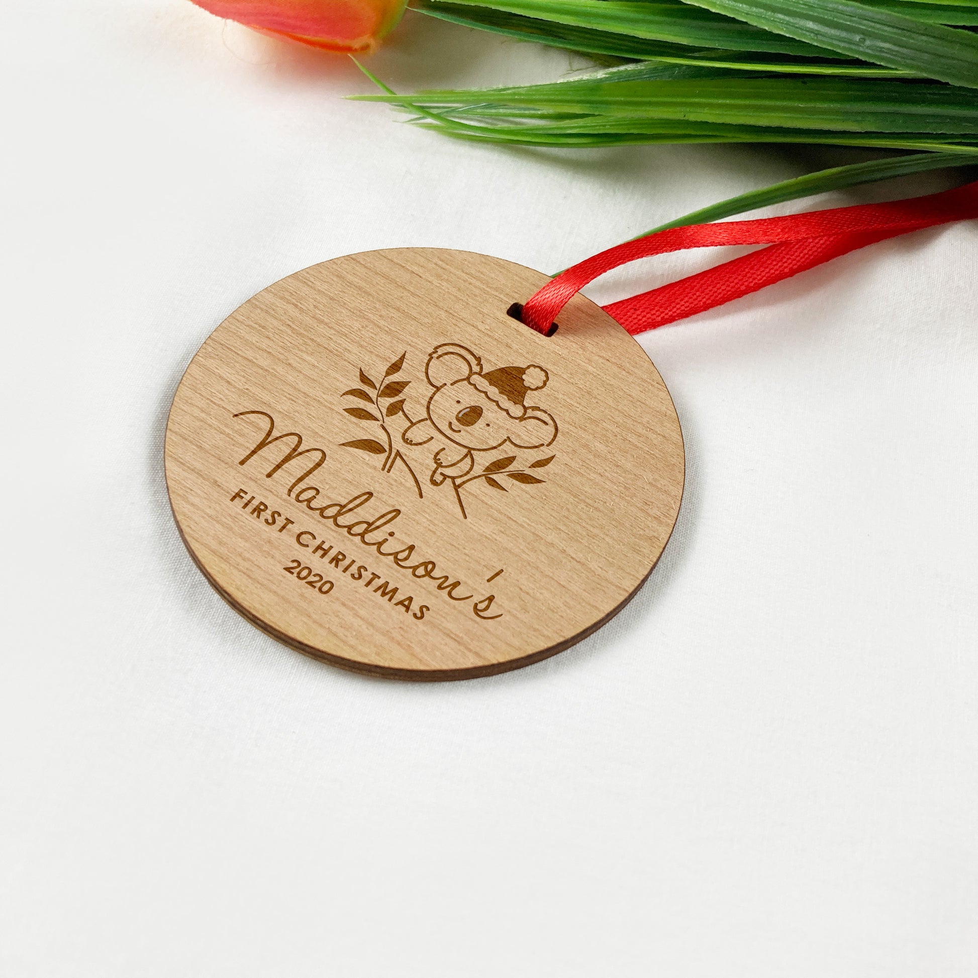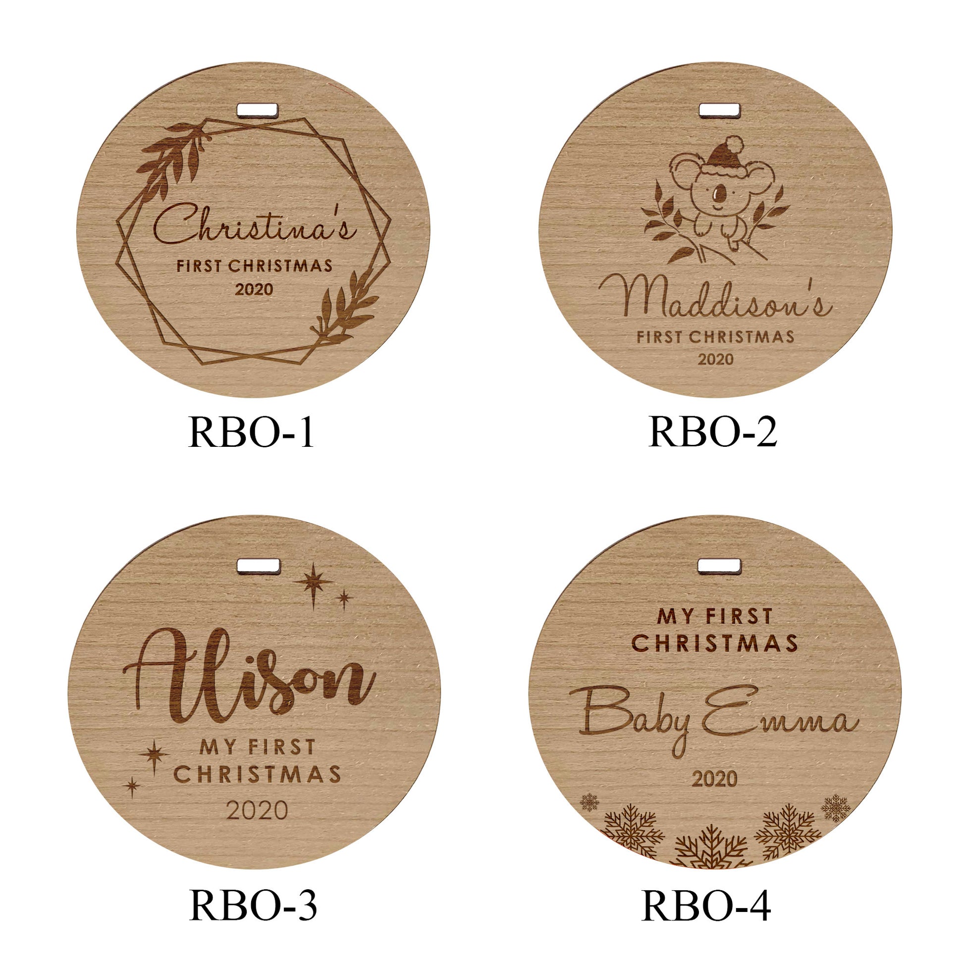 Celebrate your Baby's first Christmas with these beautiful round engraved wooden ornaments. These Christmas Ornaments are ideal keepsake gifts, perfect to hang on the Christmas tree, add to a stocking or to use as a gift tag for Christmas gifts.