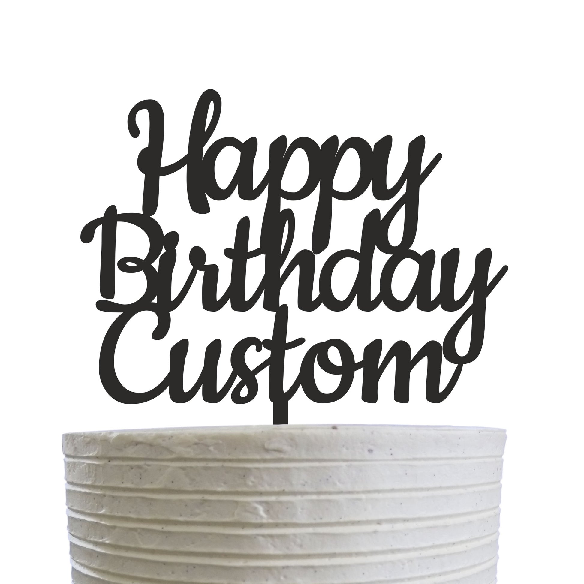Happy Birthday Cake topper in Wood Acrylic Black White Pink Gold Silver