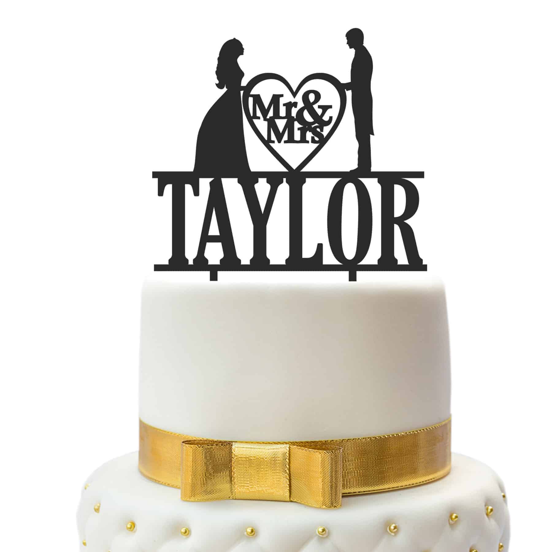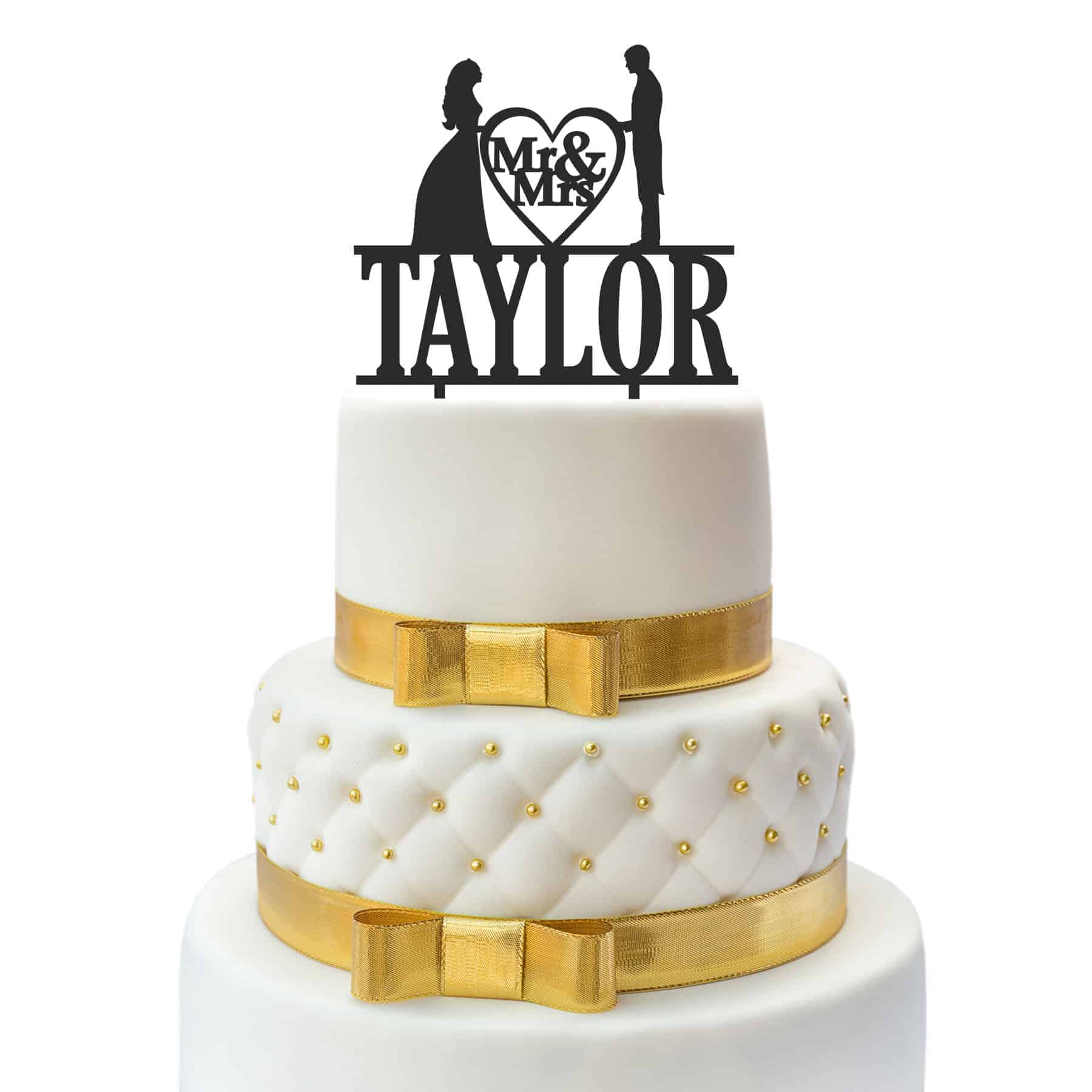 Add a personalised touch to your Engagement or Wedding cake with a custom romantic Cake Topper with heart and wedding couple! This is the perfect addition to your wedding cake & a beautiful keepsake to remember your day in years to come. Our custom made Acrylic Cake Toppers come in a variety of colours including a great range of solid tints, mirrors and MDF material. The images in listing is a graphical representation of the original design. The cake topper is custom made to order with your surname. Please message us the surname once purchase.