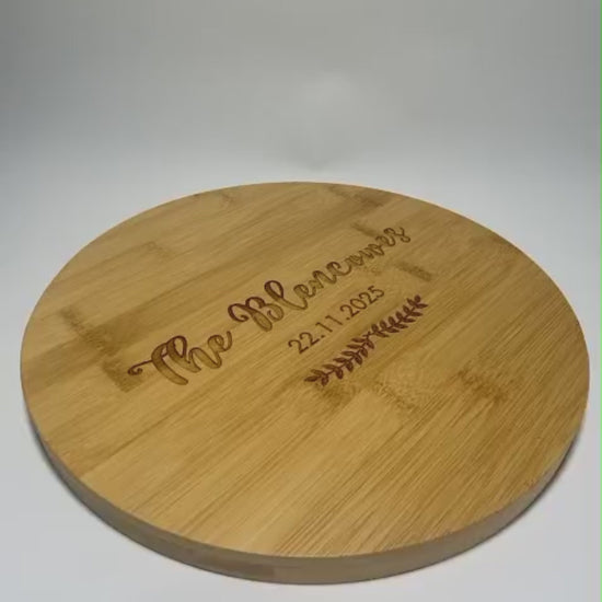Round Wooden Mr. & Mrs. Engraved Cutting Board Gift Custom Names Wedding Anniversary