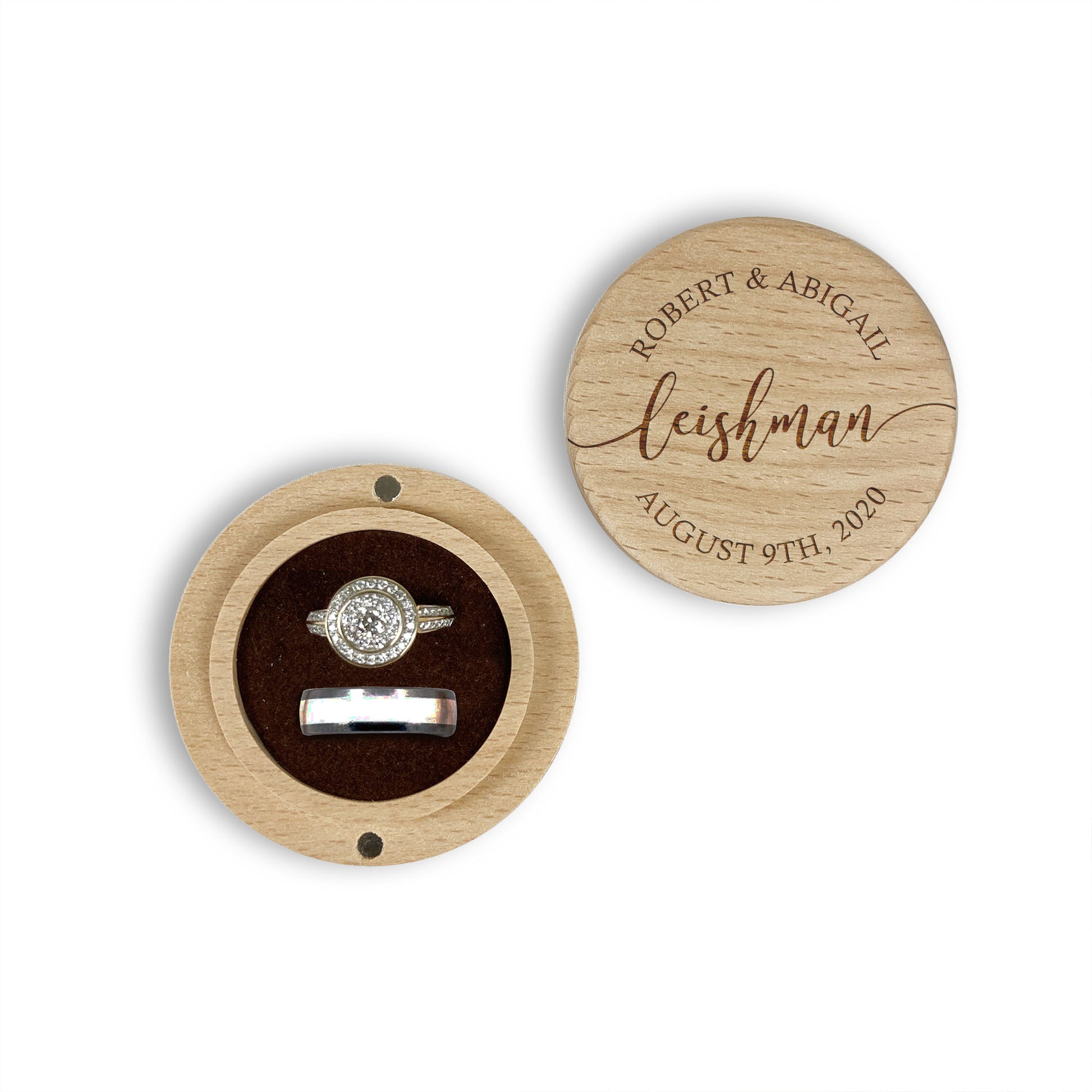 Round Ring Gift Box with Last First Names Date