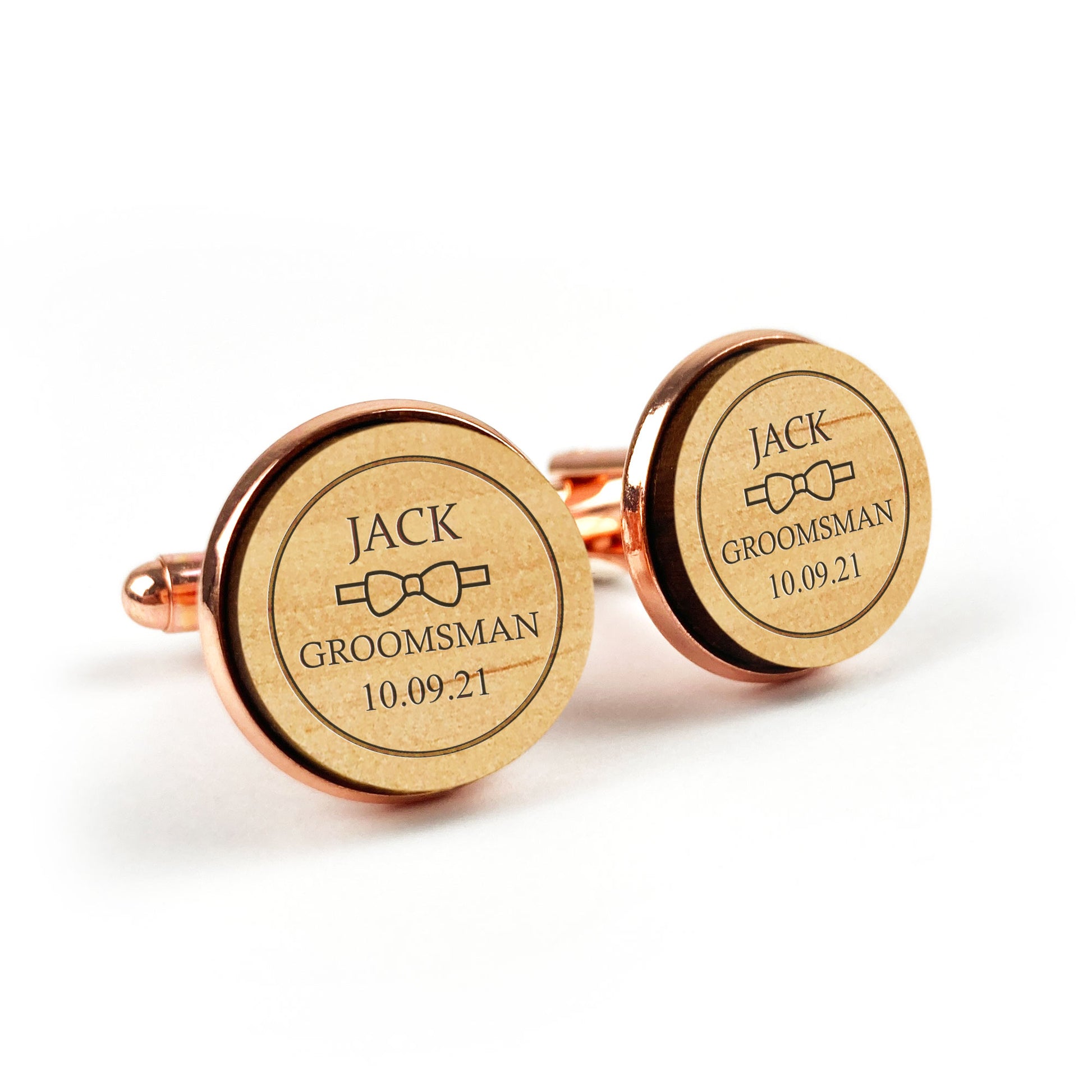 Round Wooden Engraved Wedding shirt Cufflinks Gift with Custom Name and Wedding Role