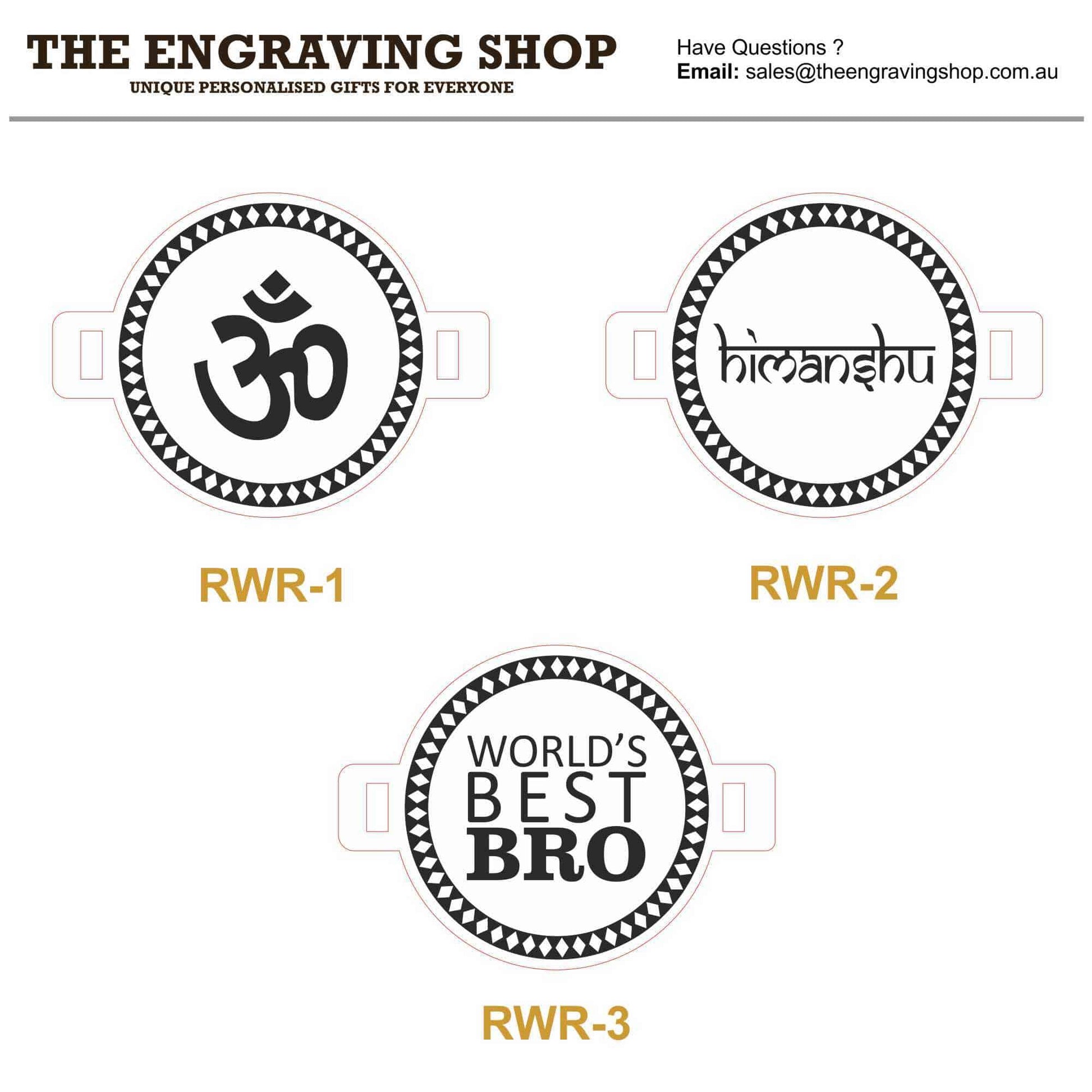 This listing is for one personalised Rakhi which can be engraved with a name or a shape of your choice. Please provide the name you require and take a note that the longer the name the smaller it will appear on the Rakhi.
