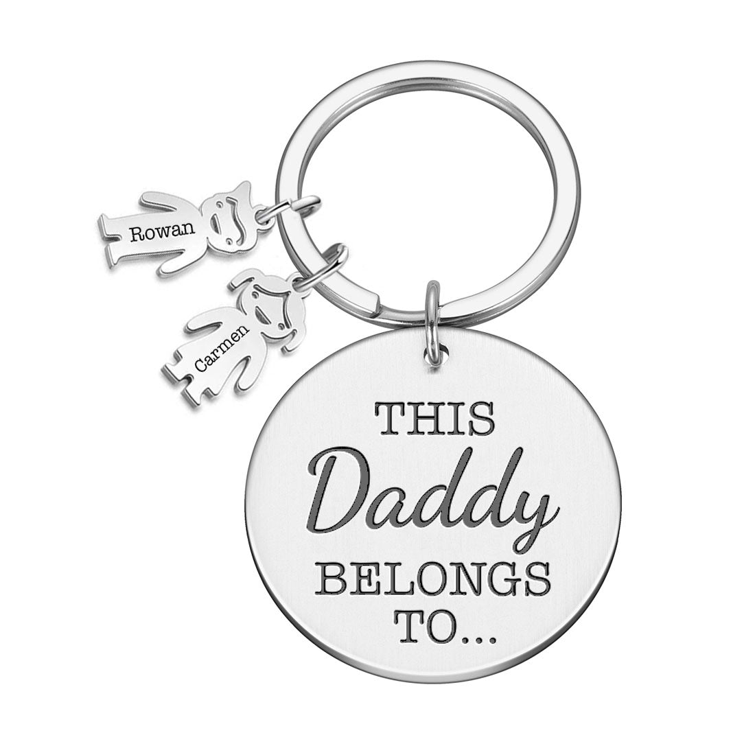 Each Keyring has a square tag with multiple boy or girl charms with their names engraved as per option and colour selected. The keyrings are custom made to order with your details. Please message us the names once purchase.