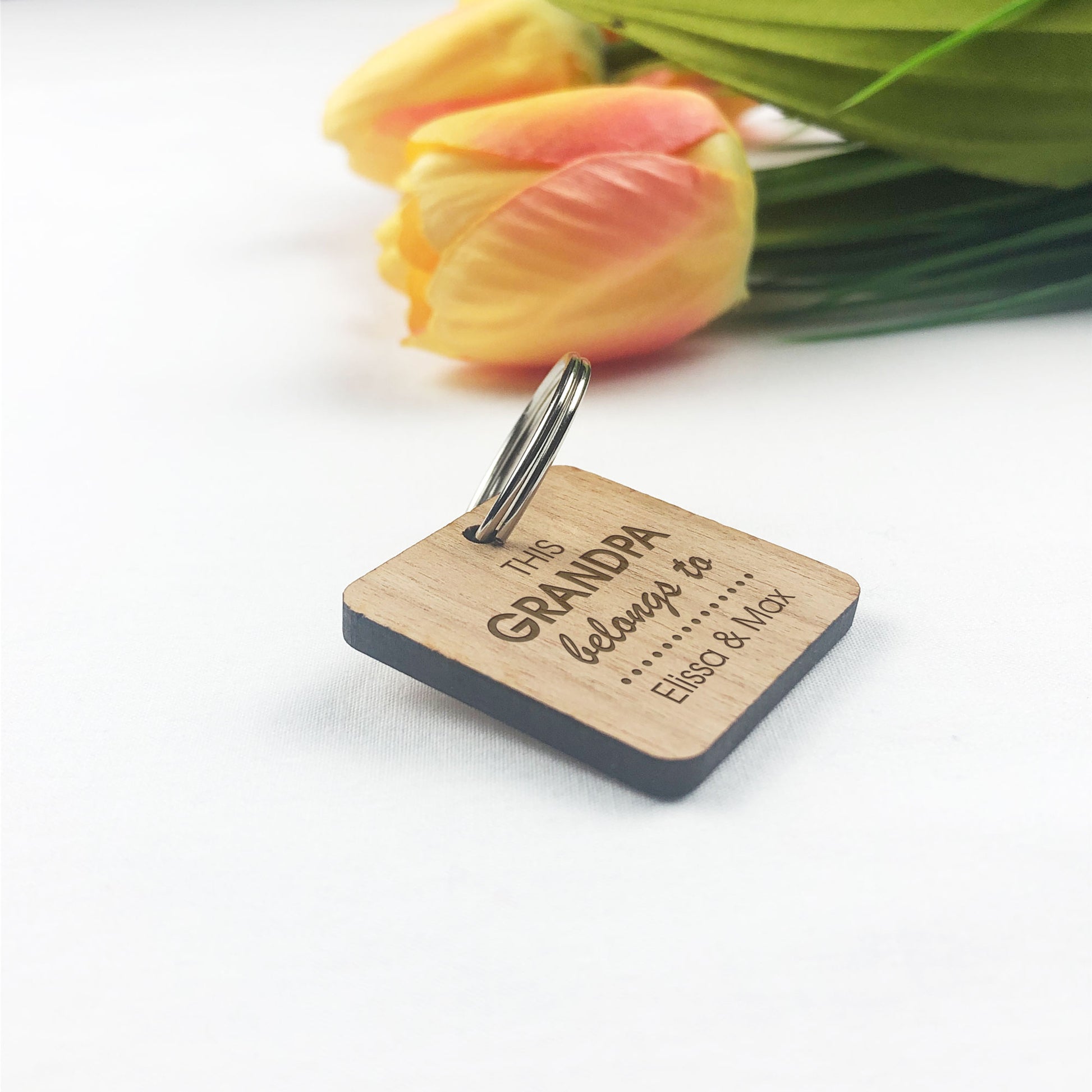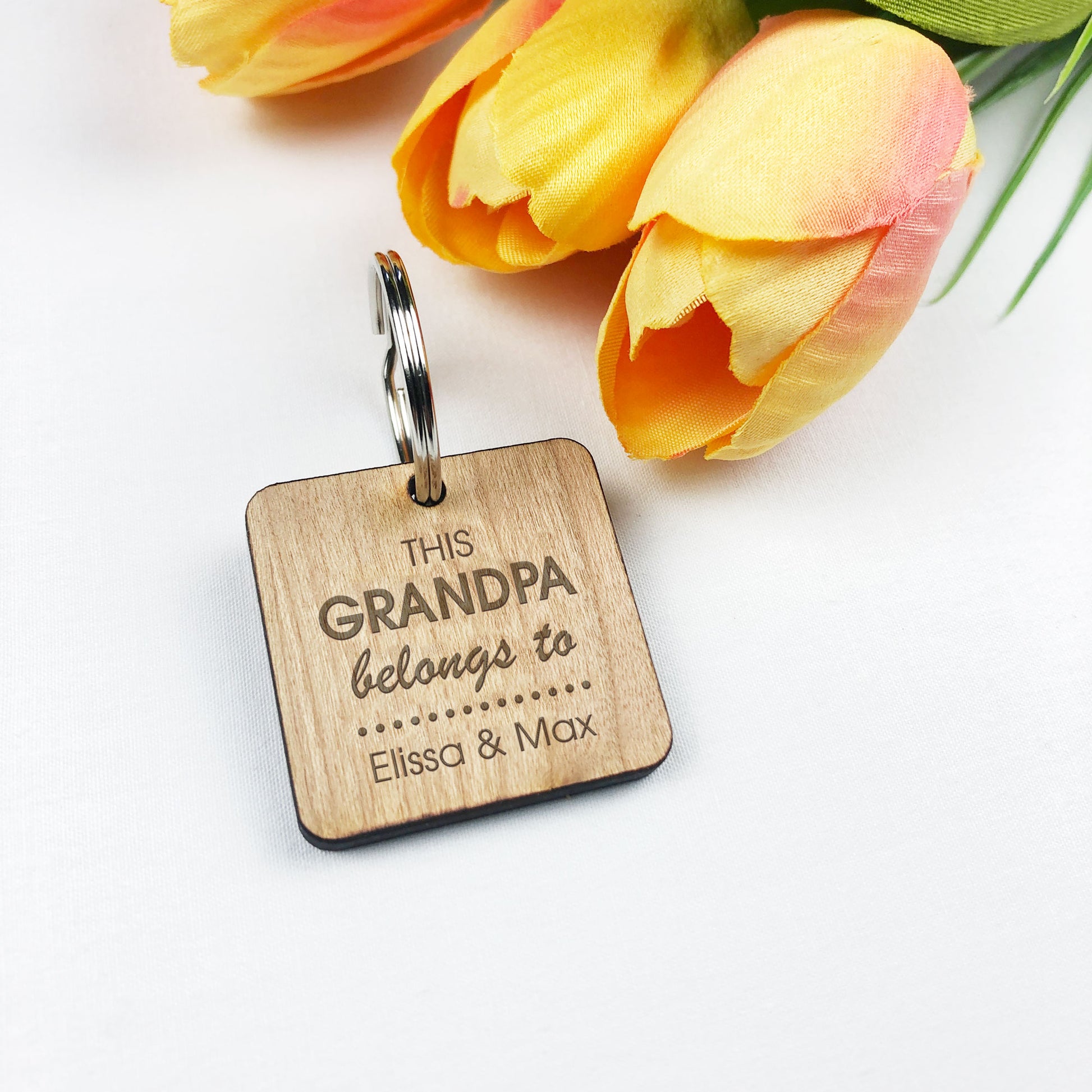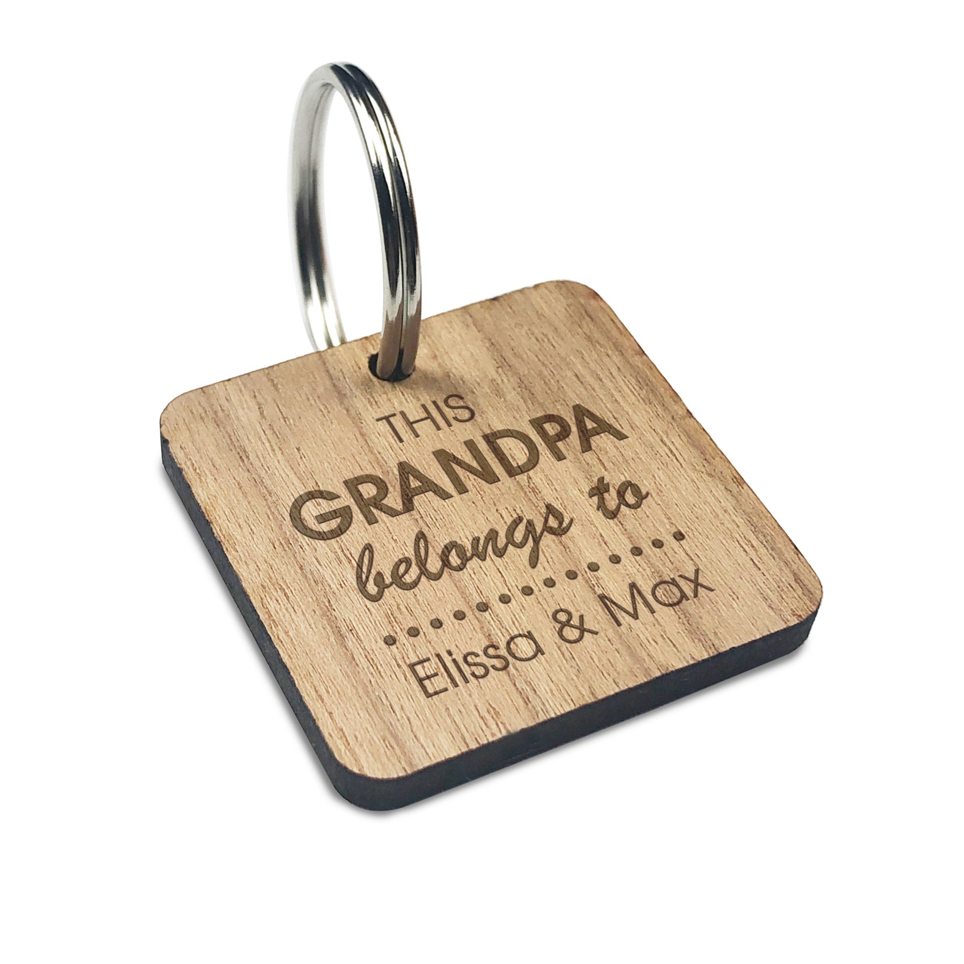 This Grandpa Belongs to Square Wooden Key ring Gift Fathers Day Birthday