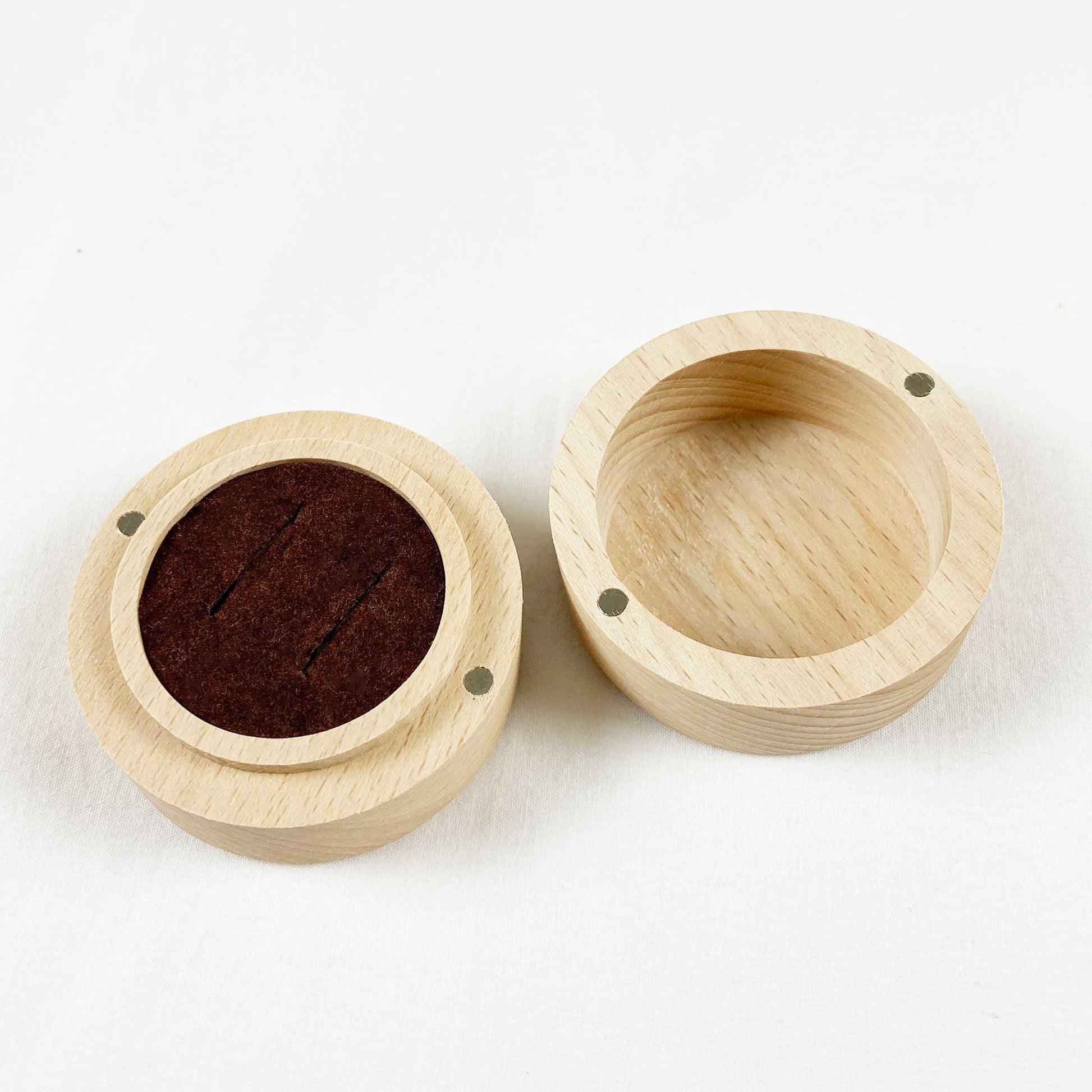 These beautiful wooden round boxes are custom engraved to order. Add a personalised touch, to your special celebration with one of our Custom Ring Boxes. A velvet topped foam insert for 1 or 2 rings included.